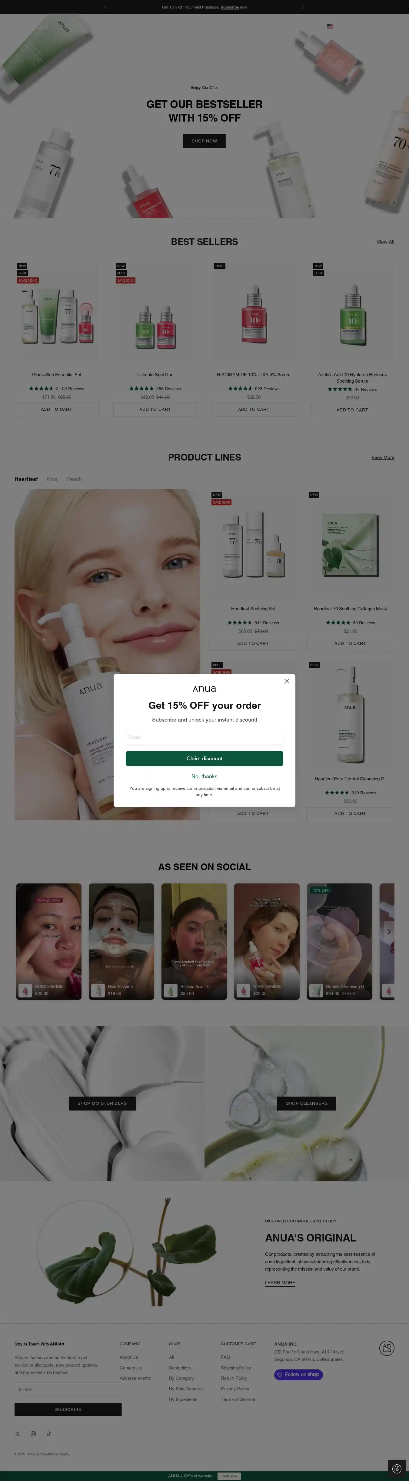 Get 15% off store-wide at Anua