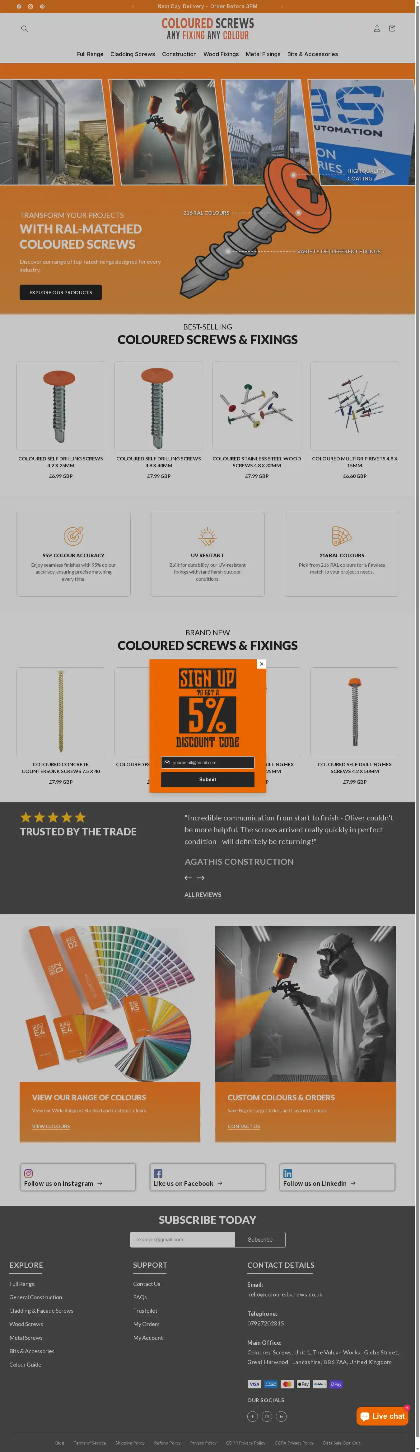 colouredscrews.co.uk discount codes, coupons & deals
