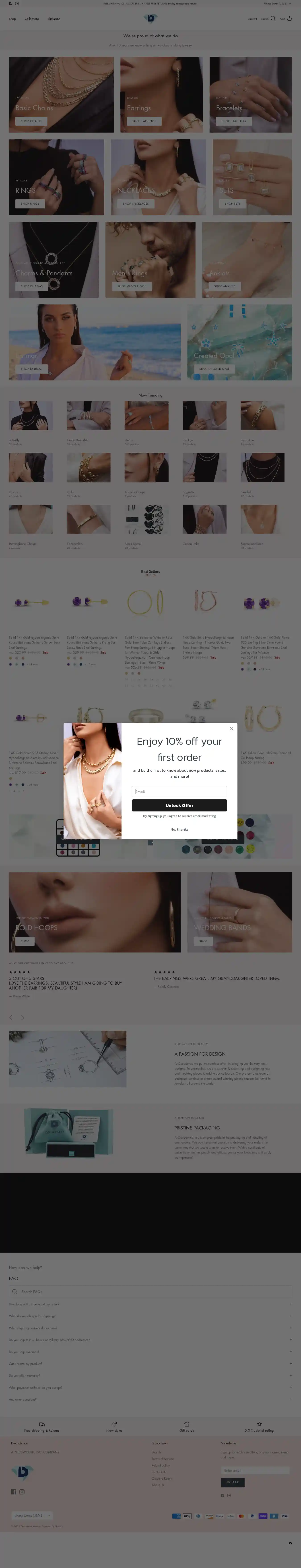 Get 10% off store-wide at Decadence Jewelry