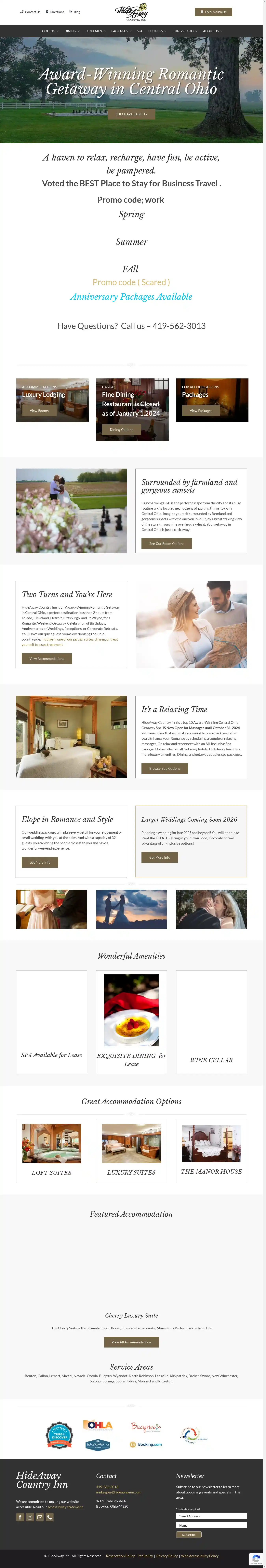 Hideaway Country Inn discount codes, coupons & deals