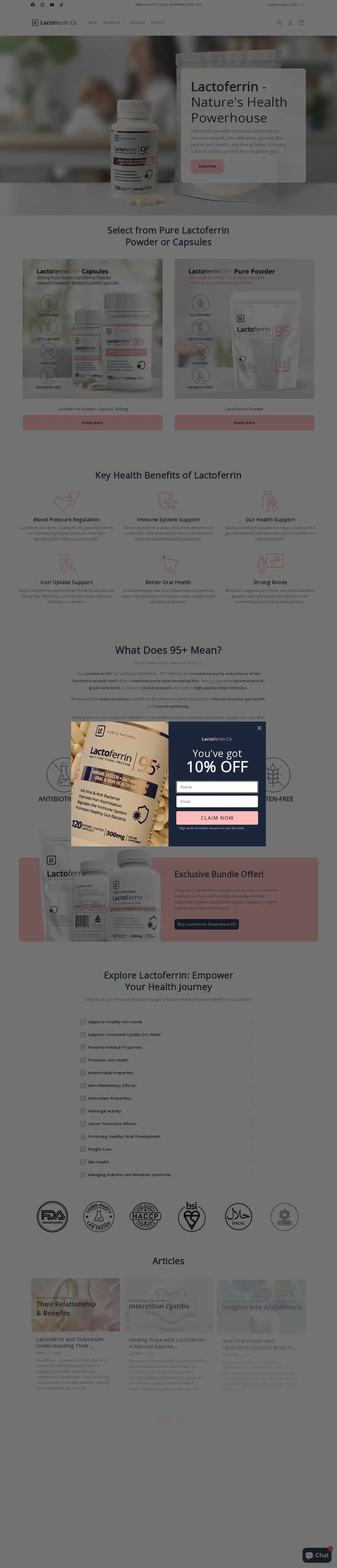 Get 10% off store-wide at Lactoferrin
