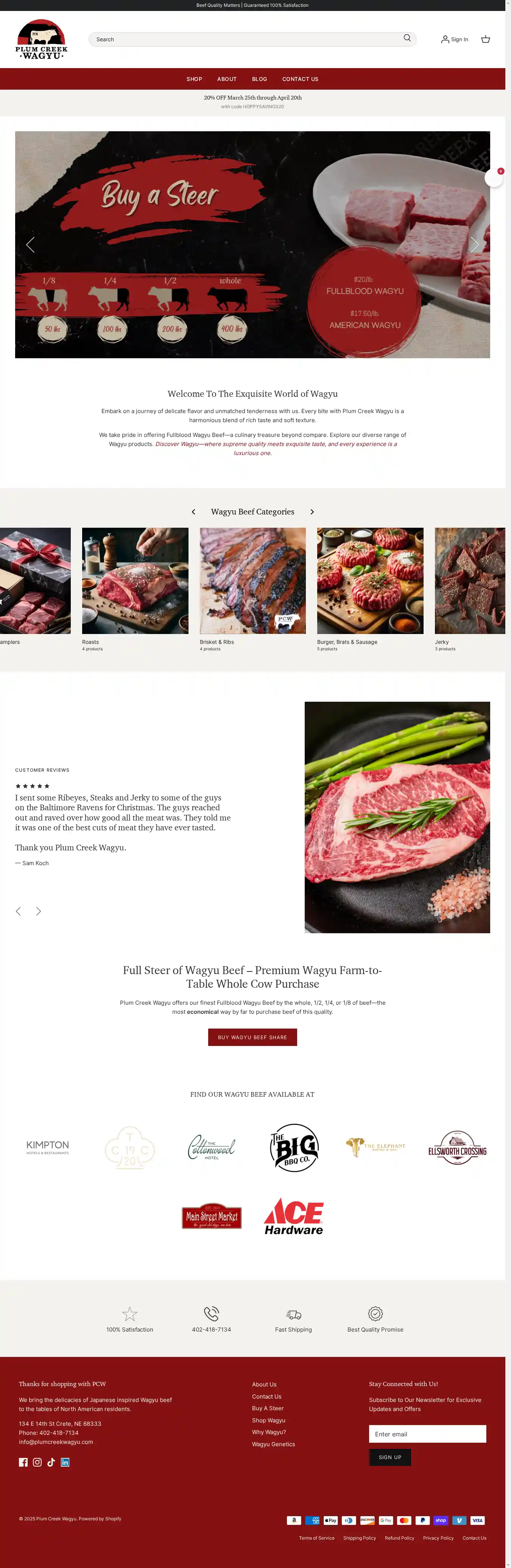 Get 20% off store-wide at Plum Creek Wagyu Beef