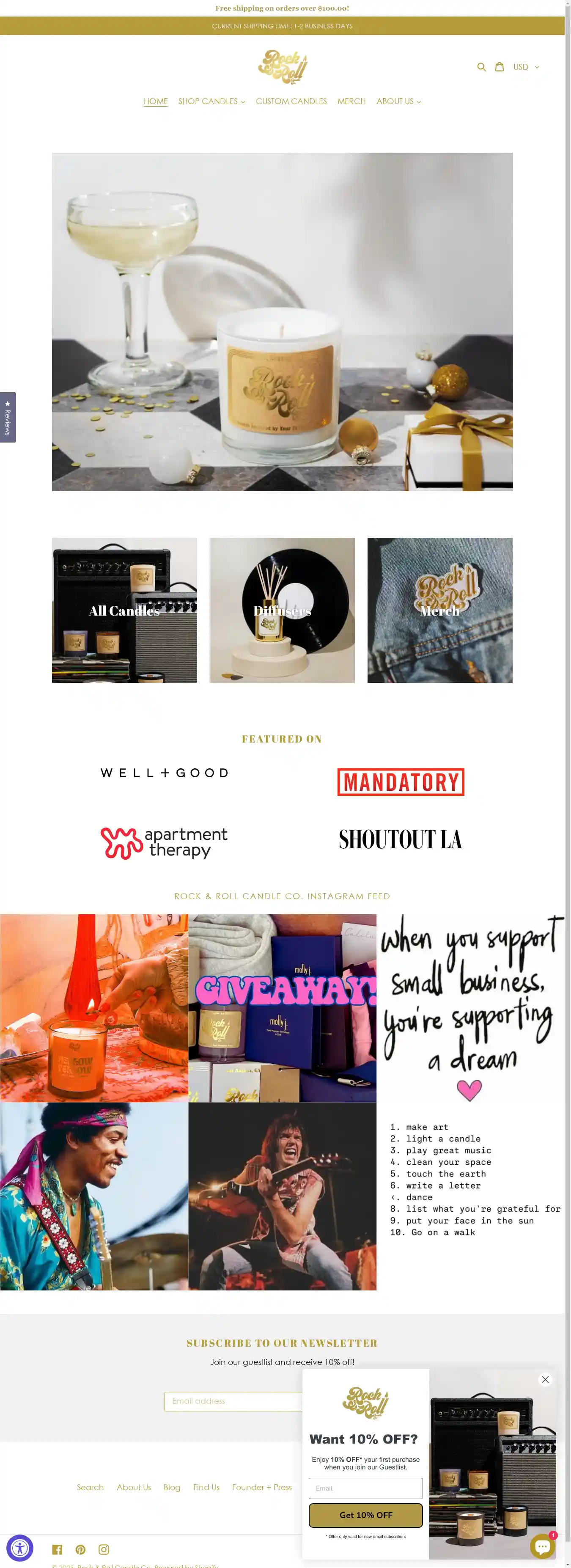 Get 10% off store-wide at Rock & Roll Candle Co.