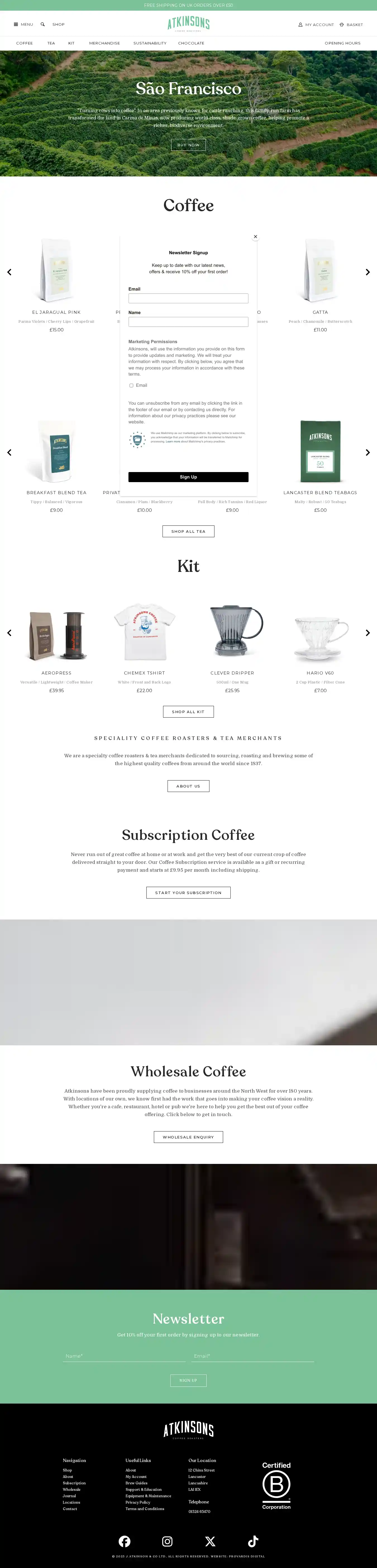 Atkinsons Coffee Roasters discount codes, coupons & deals